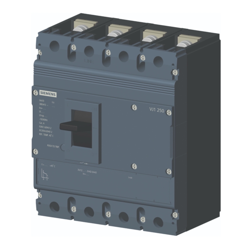 Cầu dao tự động dạng khối MCCB 3VJ 4 cực,có chức năng đóng cắt mạch điện, bảo vệ ngắn mạch và quá tải.